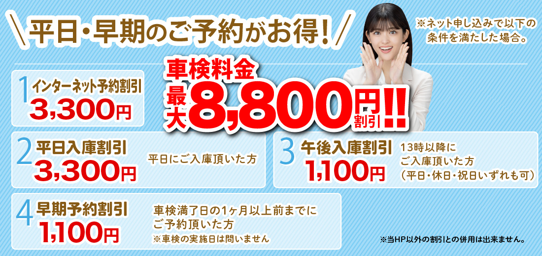 下記、他店でよくある最安値料金に適用されている割引となります。
