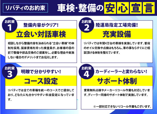 京都精華・奈良・生駒・木津川・大和郡山エリアのお客様が安心してご利用いただけるように、【車検後2年間の保証】もお付けしております。